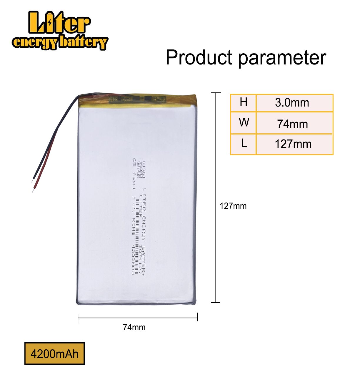 3074127 3.7v 4200 Mah Tablet Battery Brand Tablet General Polymer Lithium Battery Liter Energy Battery