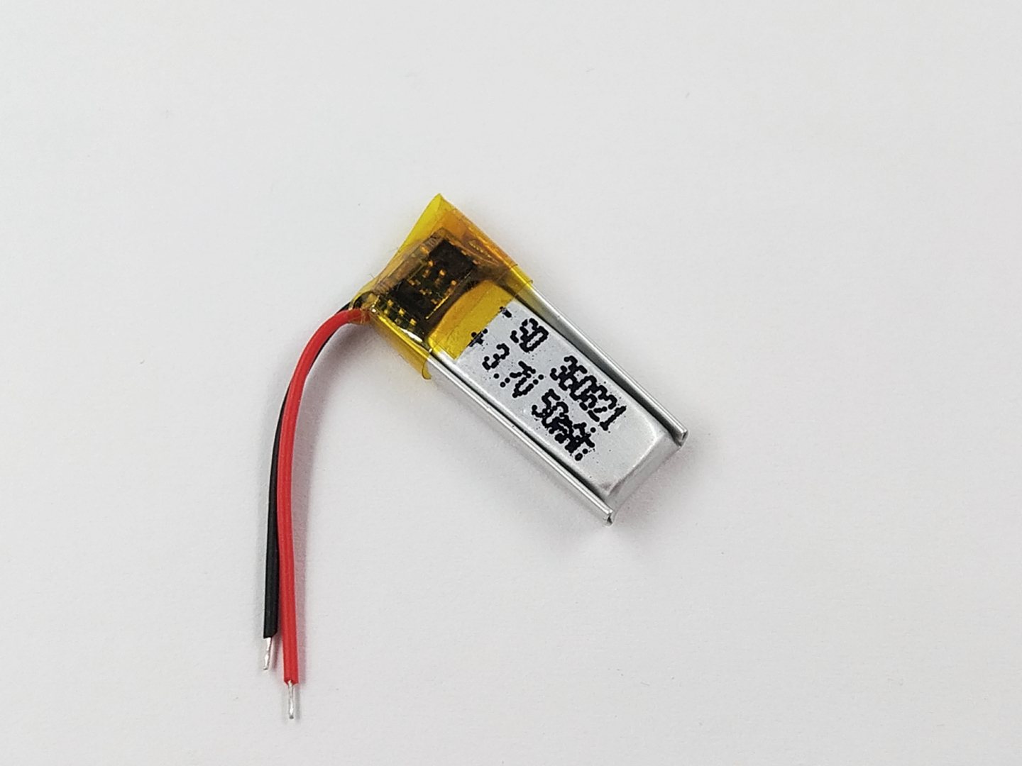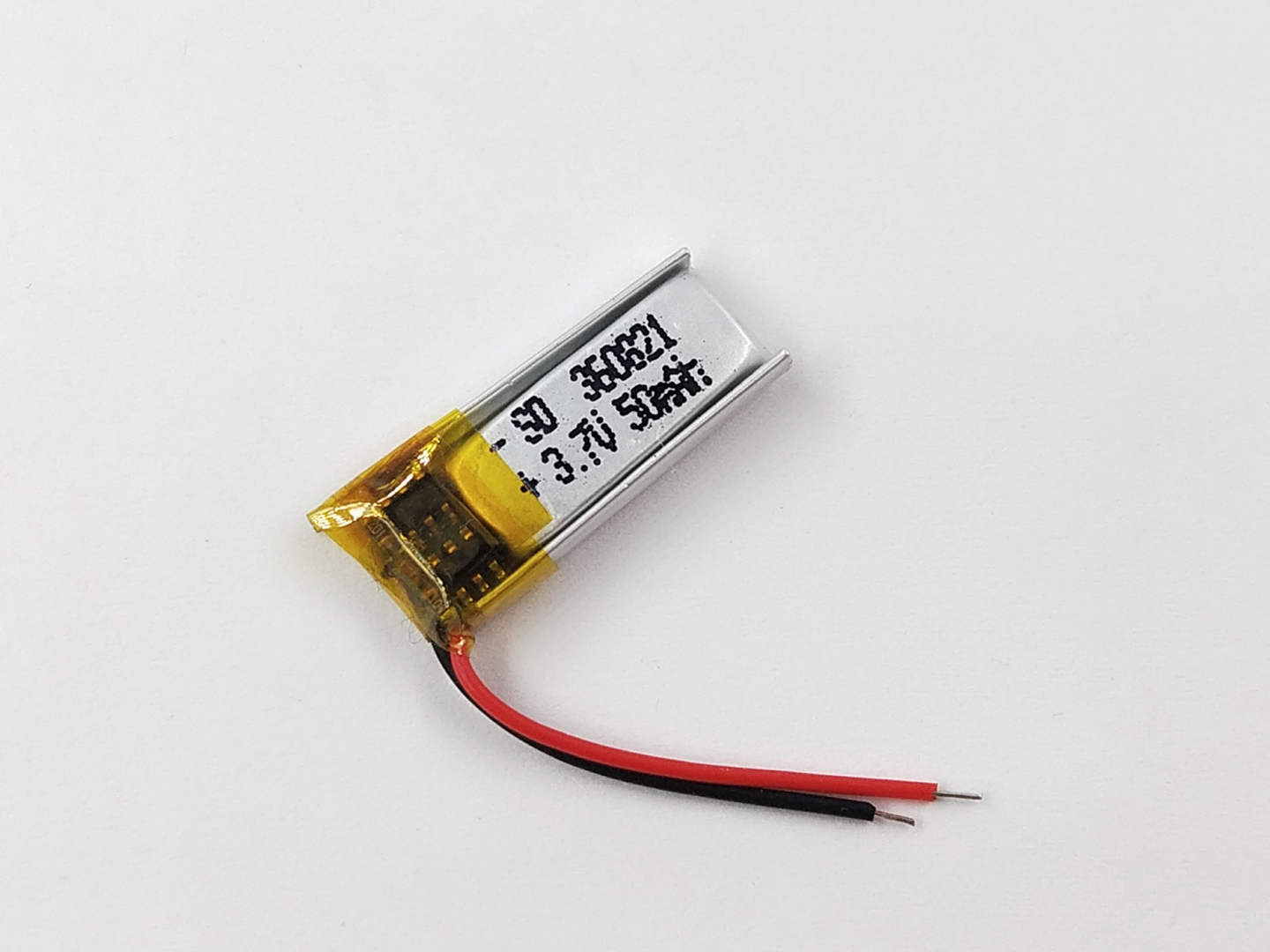 Mini 360821 3.7V, 50mAh rechargeable Li-Po battery.