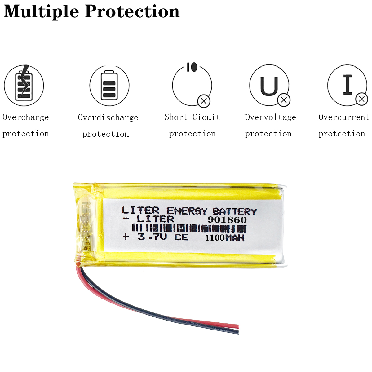 Premium 3.7V, 1100mAh 901860 rechargeable Li-Po battery.