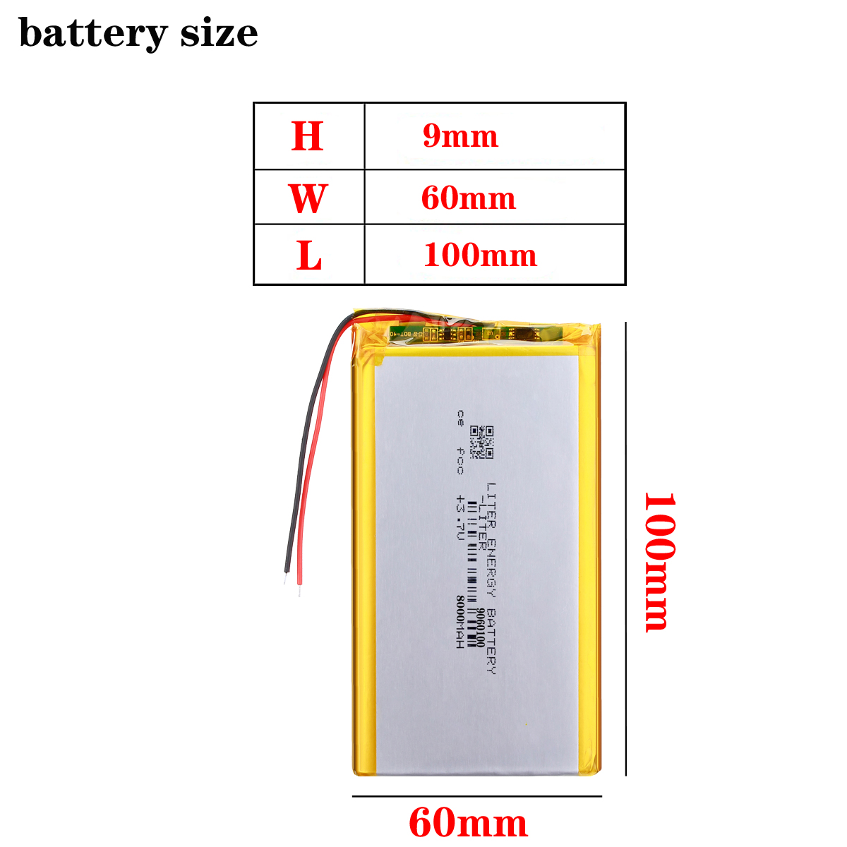 Premium 9060100 3.7V, 8000mAh rechargeable Li-Po battery.