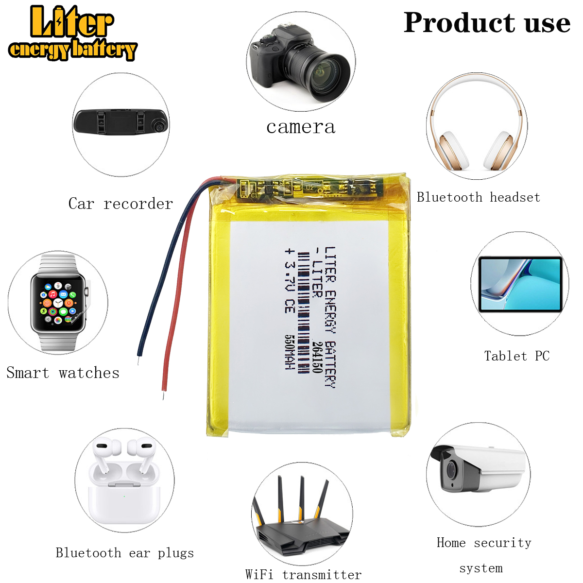 Widely used for MP3, MP4, GPS, Bluetooth speakers & headsets & selfie sticks, headphones, smart watch, mini digital camera, portable DVD, MID, PDA, pos machines, RC helicopter, interphone, voice recorder, backup powers, electric toys and other devices with the same battery size and capacity.