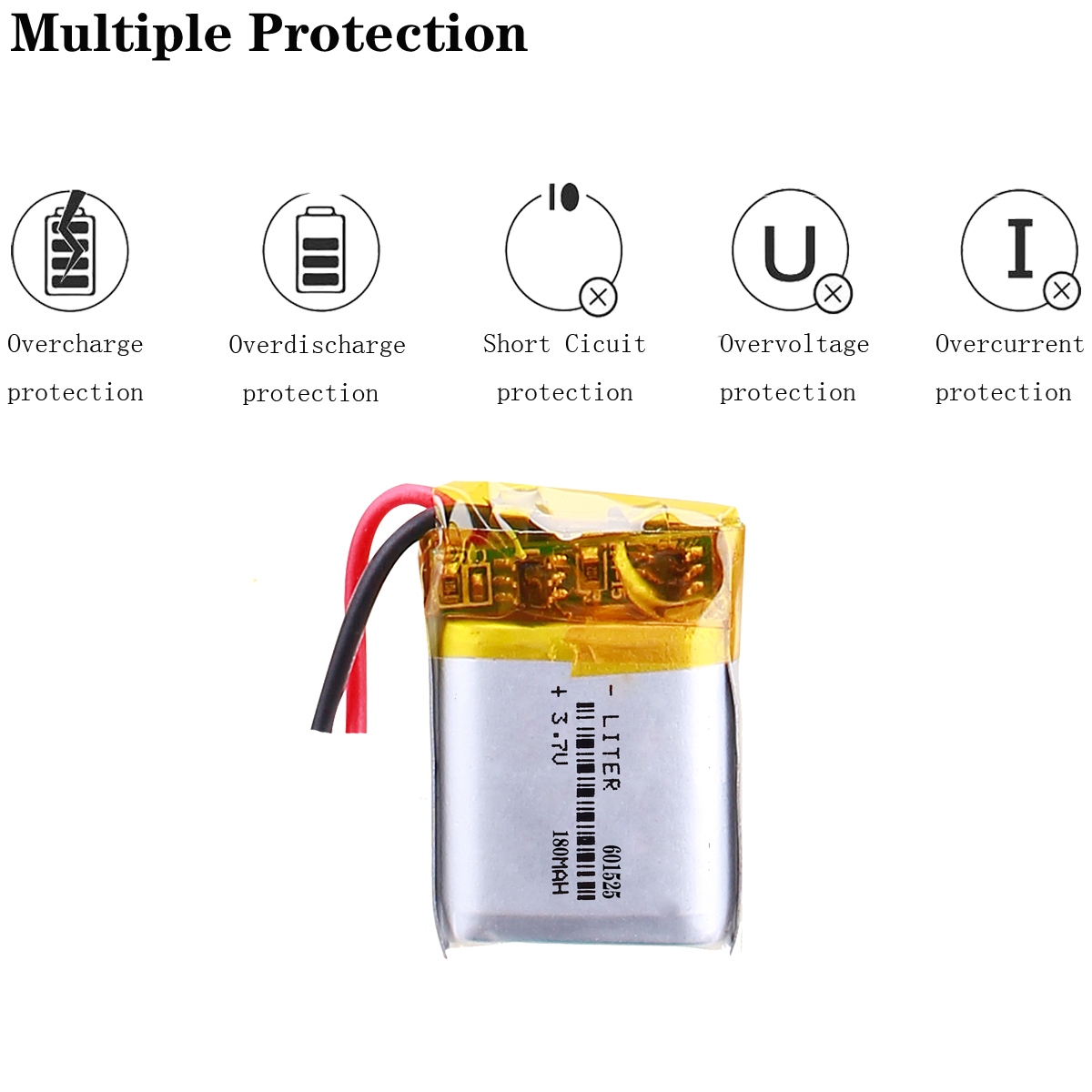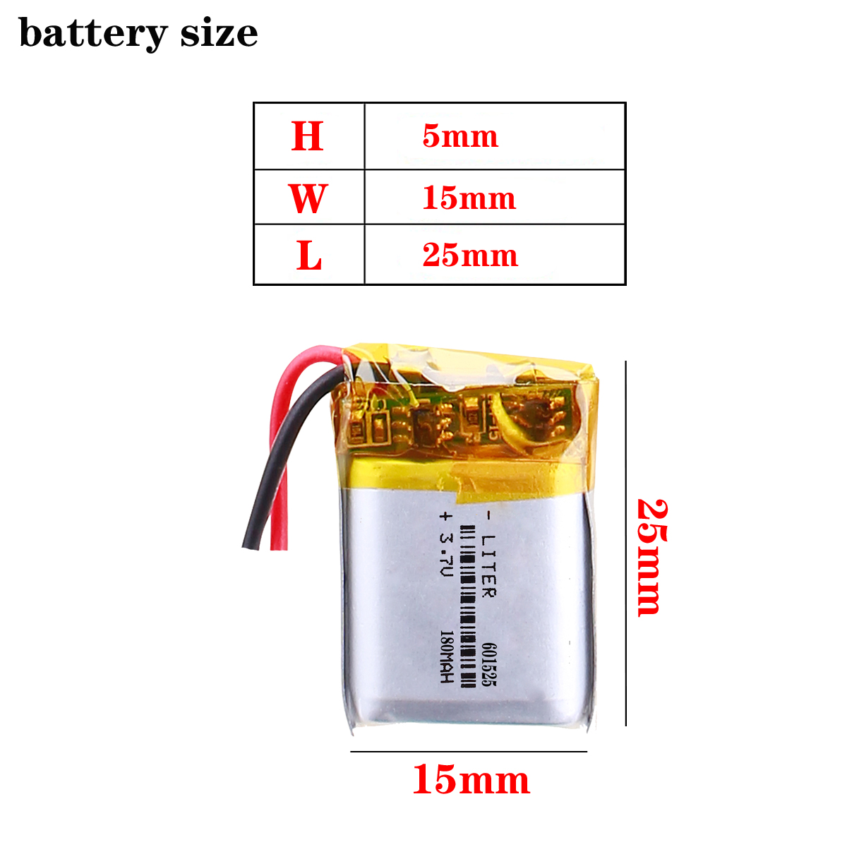 Premium 3.7V, 180mAh 601525 rechargeable Li-Po battery.