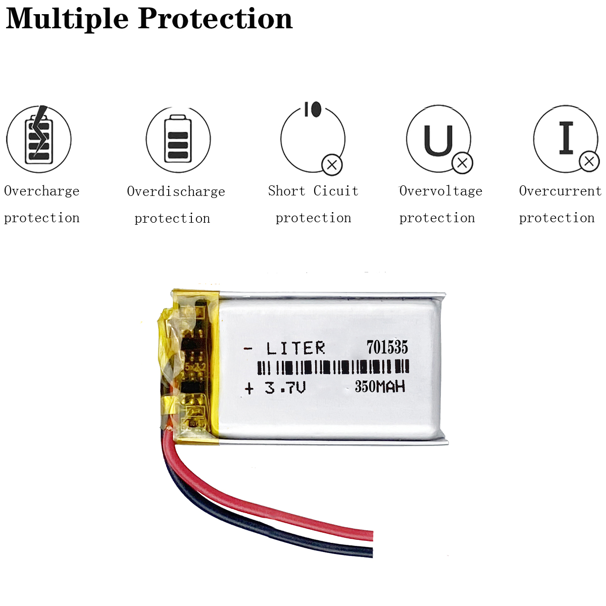 Premium 3.7V, 350mAh 701535 rechargeable Li-Po battery.