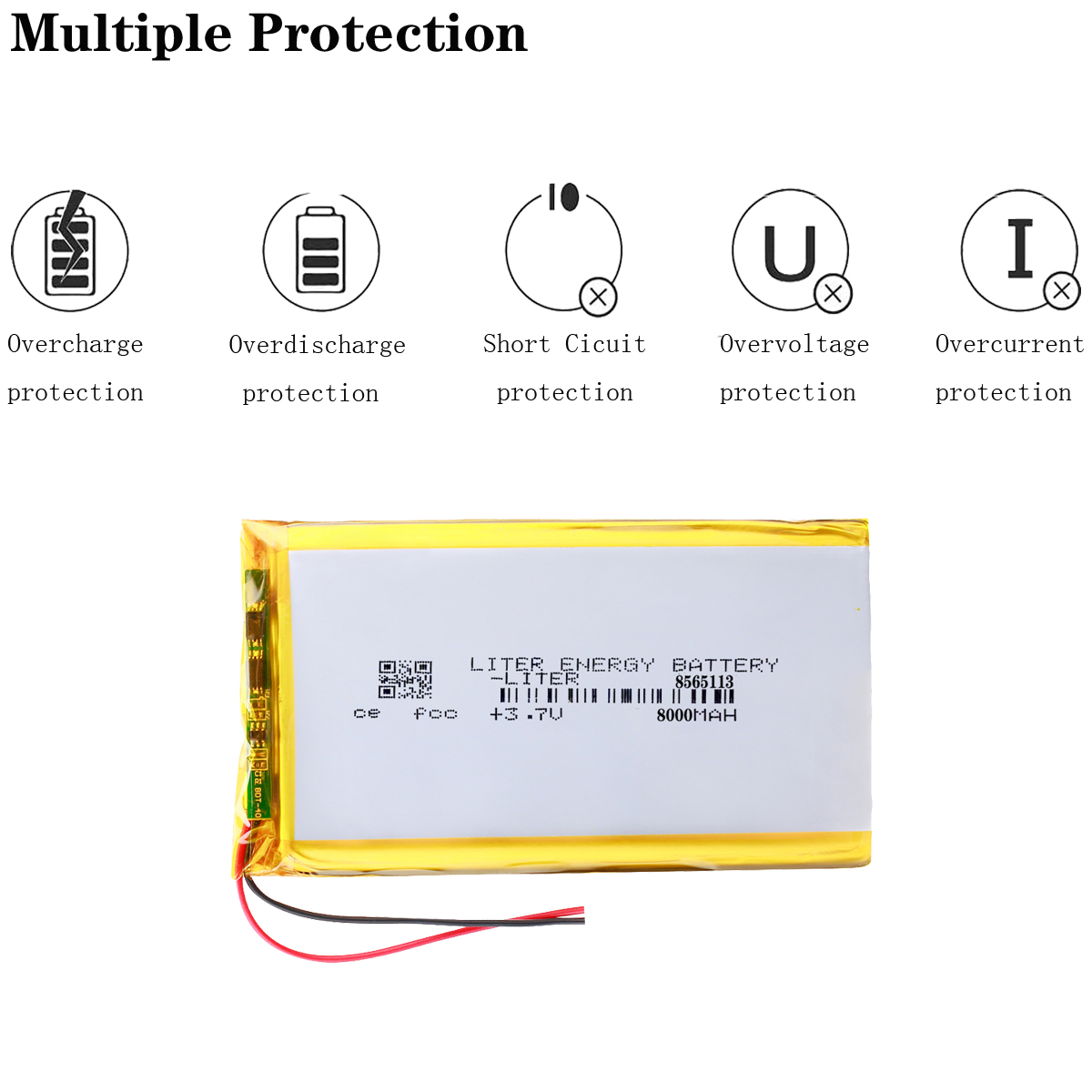 Premium 8565113 3.7V, 8000mAh rechargeable Li-Po battery.