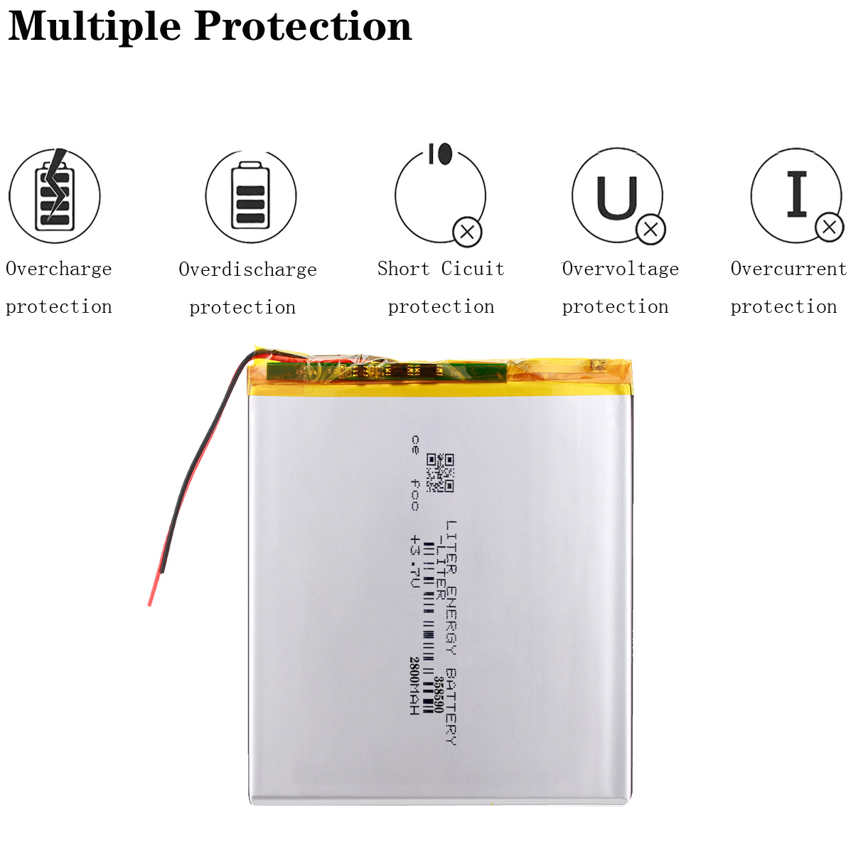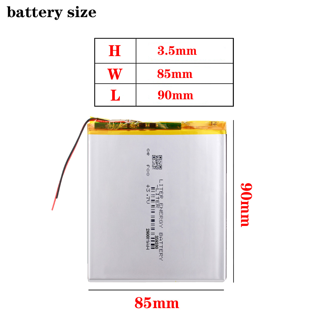 Premium 3.7V, 2800mAh 358590 rechargeable Li-Po battery.