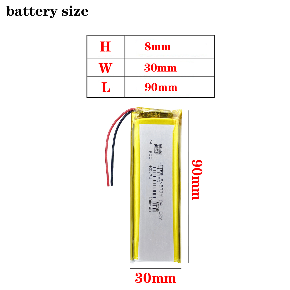 Premium 3.7V, 3000mAh 803090 rechargeable Li-Po battery.